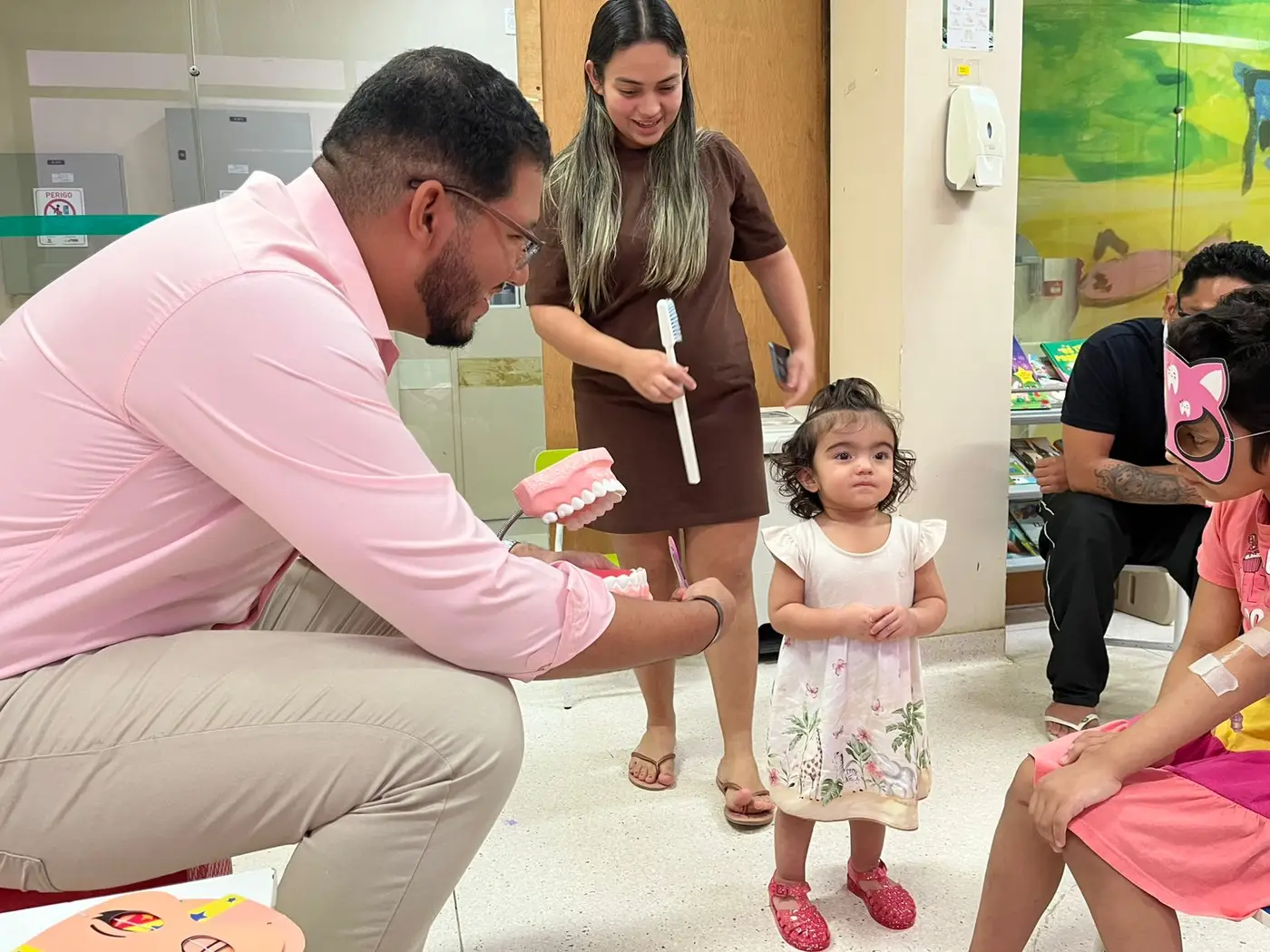 Atenção familiar - A participação da família também é essencial nesse processo. Pais e responsáveis são orientados a manter os cuidados após a alta hospitalar, garantindo a continuidade do tratamento em casa. "(A ação) esclareceu muitas dúvidas, e mostrou que é importante sempre estar com a saúde bucal em dia. A escovação da Cecília é feita pela manhã e à noite, antes de ir dormir. Sempre levei ela ao pediatra e, no tempo certo, fui orientada a fazer a escovação dos dentinhos dela. Hoje, soube que não devemos esquecer de escovar os dentes corretamente", disse Dafne Lima, 23 anos, mãe de Cecília, de 1 ano e 5 meses, em tratamento contra um neuroblastoma.