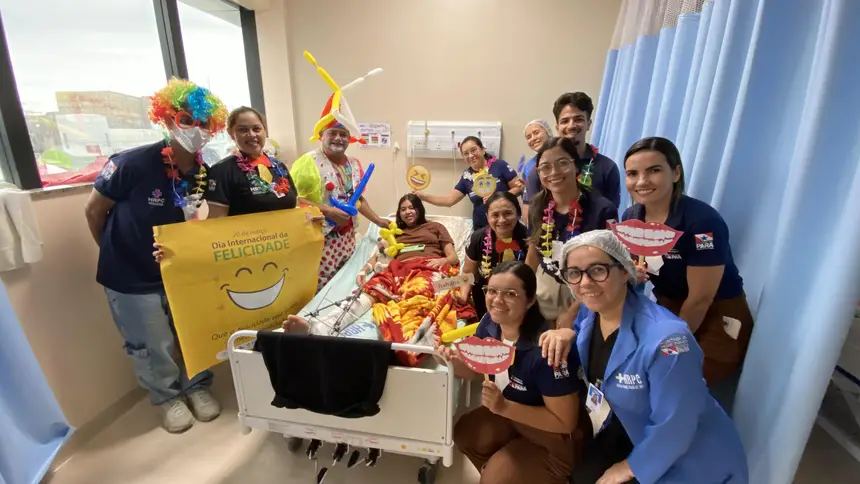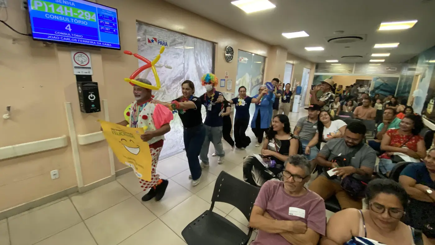 Referência em atendimentos de média e alta complexidade, o Hospital Regional Público dos Caetés (HRPC), em Capanema, nordeste paraense, realizou, nesta segunda-feira (23), uma ação especial em alusão ao Dia da Alegria, celebrado em março. Promovida pelo Grupo de Trabalho de Humanização (GTH), a iniciativa proporcionou momentos de acolhimento, leveza e bem-estar a usuários e acompanhantes, fortalecendo o cuidado humanizado em diferentes espaços da unidade.