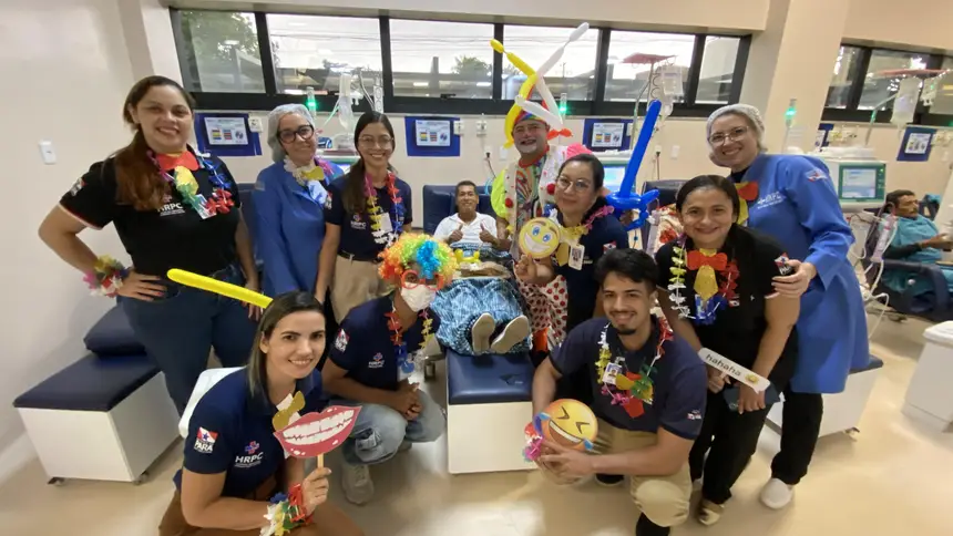 A programação contou com a participação do palhaço Kbção, que percorreu as instalações da unidade, incluindo o Centro de Hemodiálise