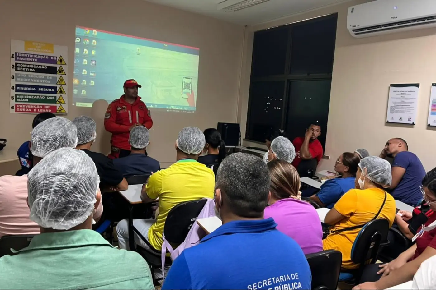 A programação contempla orientações sobre o uso adequado dos equipamentos de segurança e a execução do plano de evacuação, com foco na organização dos fluxos internos e na garantia da integridade física de todos que circulam no hospital. A proposta é assegurar que os participantes compreendam os procedimentos a serem adotados em diferentes tipos de ocorrência, reduzindo riscos e danos.