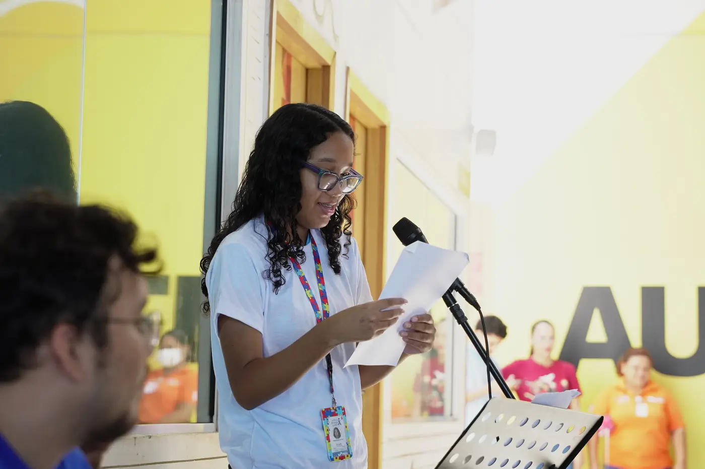 A mãe também destacou o papel dos profissionais no processo. “A professora de Teatro, Paula Barros, é uma pessoa muito carismática com eles, muito incentivadora. Se fosse por ela, minha filha não iria querer, mas a Paula incentiva e consegue. Tem um jeitinho que consegue tirar o que a Edinalda pode dar”, acrescentou.