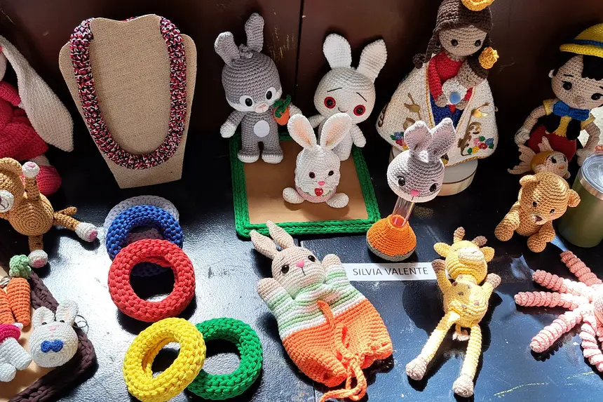 Silvia Valente participa do evento apresentando artes em crochê. No local, ela comercializa os tradicionais amigurumis, além de colar e brincos produzidos com a técnica de microcrochê. Ela conta que trabalha há oito anos com essa arte e avalia como fundamental o apoio do governo na disponibilização do espaço, especialmente para quem não possui um local físico.