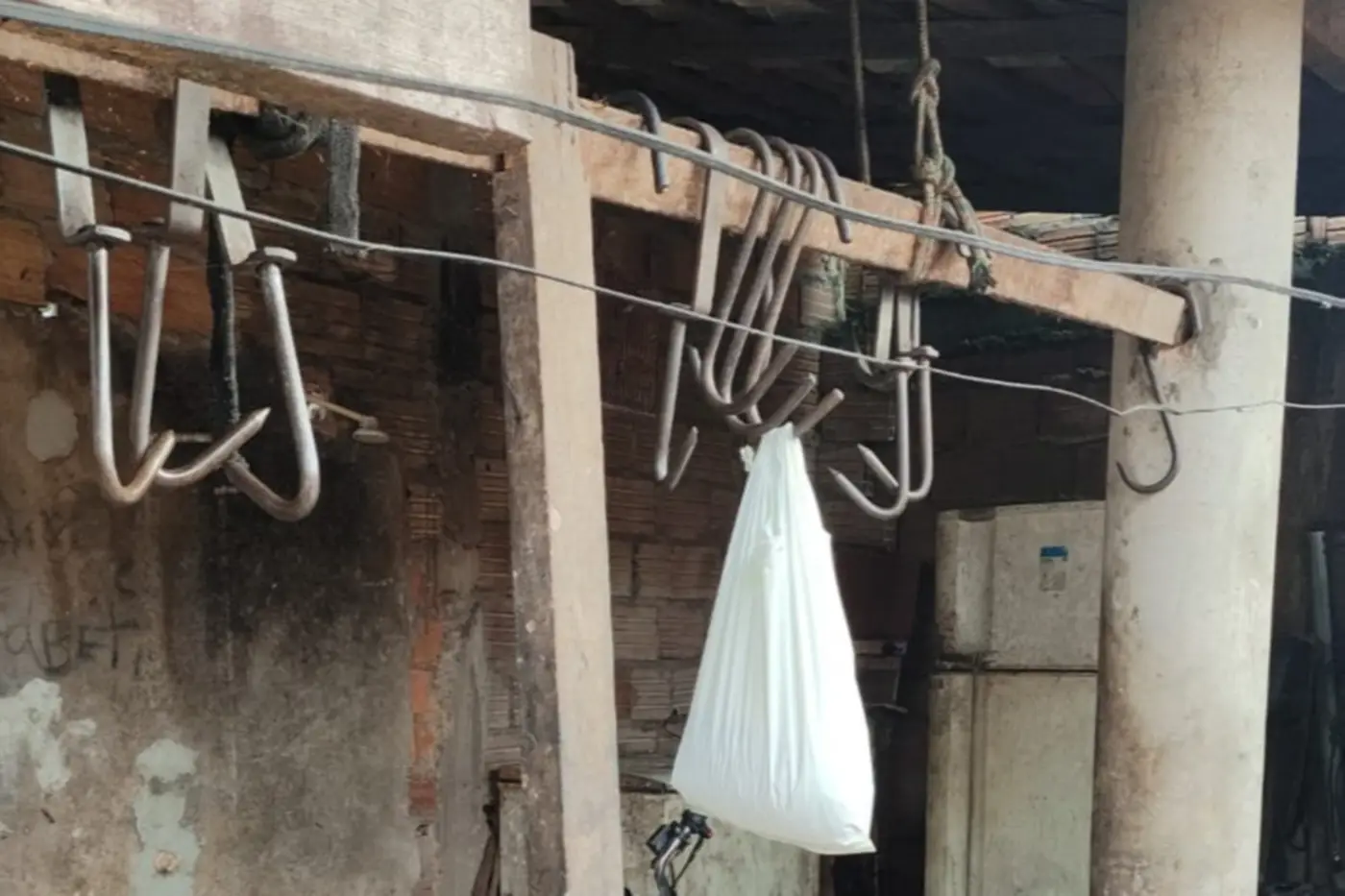 No local, havia carcaças sem identificação ou selo de inspeção, além de ossadas, couros e restos de animais espalhados pelo terreno, evidências de atividade sistemática e ilegal.