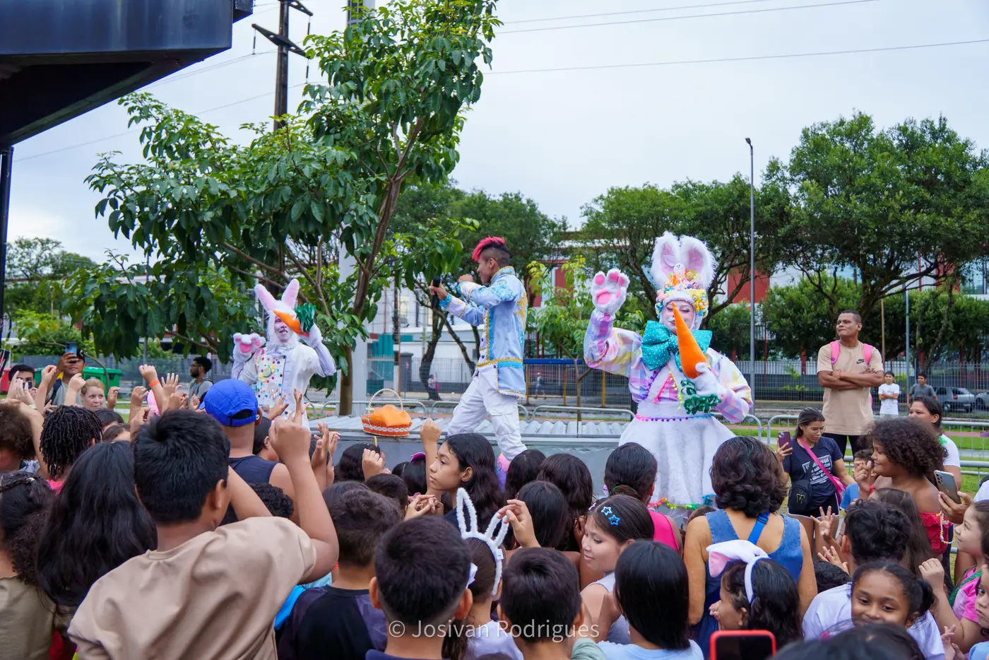 O Complexo Porto Futuro, em Belém, realizou neste sábado (4) uma programação especial de Páscoa, que reuniu adultos e crianças em uma tarde de lazer, cultura e inclusão no Parque Urbano. As atividades gratuitas marcaram a primeira edição da "caça aos ovos" no espaço, incluindo ações voltadas ao público neurodivergente, por meio da parceria com a Coordenação Estadual de Políticas para o Autismo (Cepa), vinculada à Secretaria de Estado de Saúde Pública (Sespa).