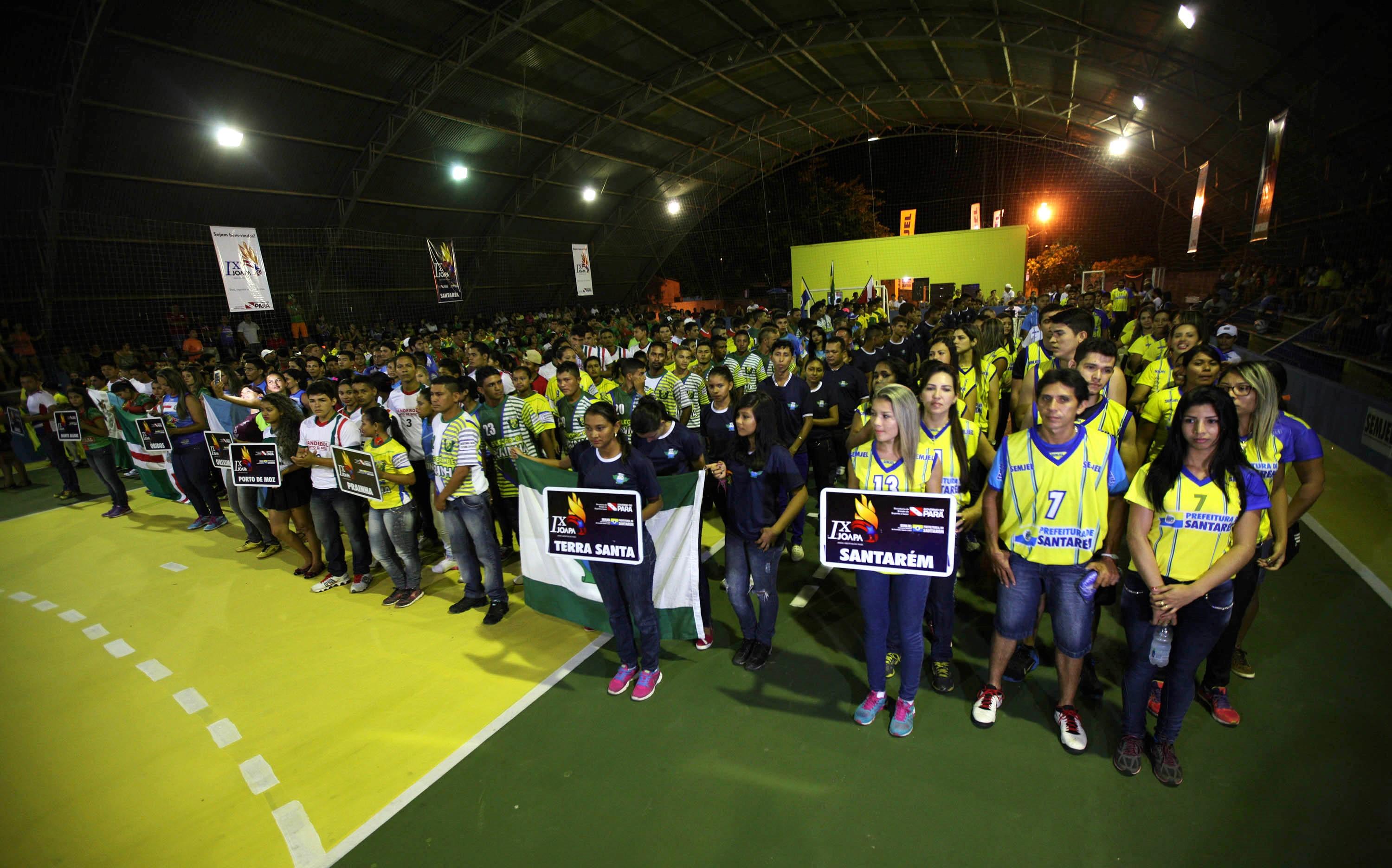 Delegações – A solenidade de abertura, realizada na quadra de esportes do ginásio da Cidadania, no centro de Santarém, contou com uma programação esportiva e apresentação cultural com números de danças regionais. Houve desfile das delegações de Santarém, Óbidos, Oriximiná, Alenquer, Curuá, Juruti, Prainha, Porto de Moz, Terra Santa e Monte Alegre. A tocha olímpica foi conduzida pelo atleta do handebol de Santarém, Jacson Thiago. O juramento coube à atleta Poliane Guimarães.