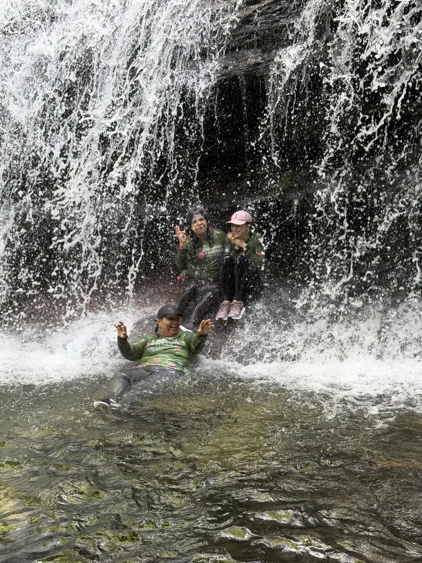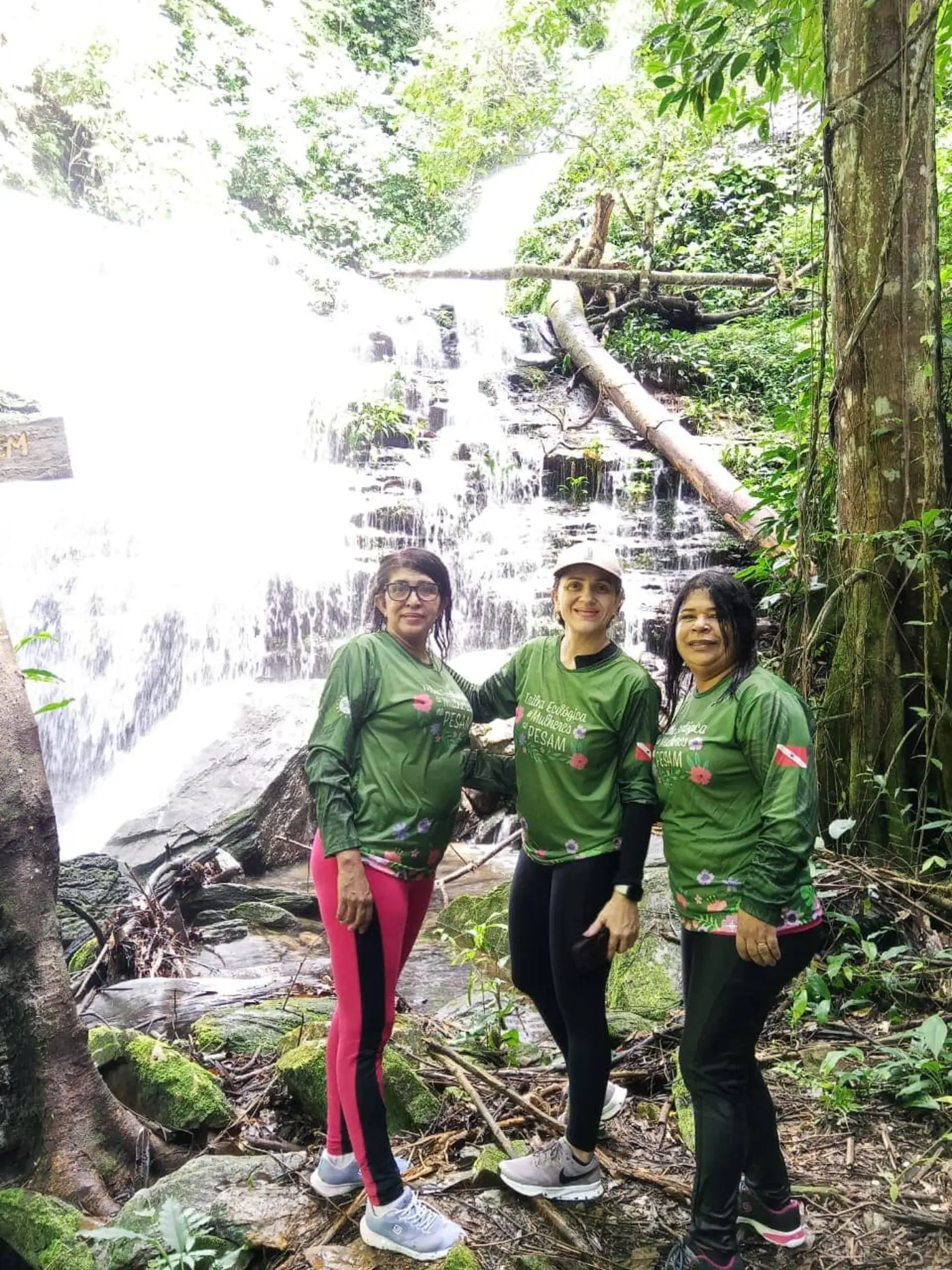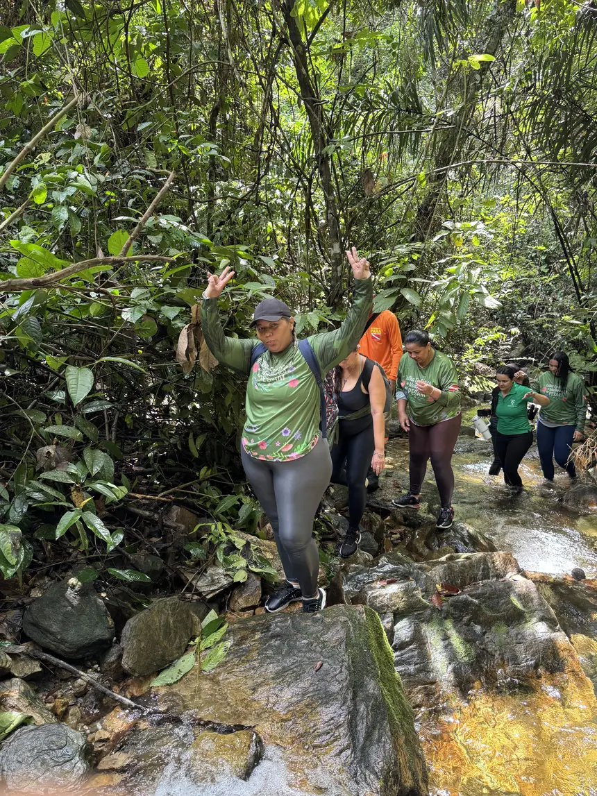 Por volta das 9h, o grupo partiu em direção ao Parque Estadual. Ao chegarem, as participantes fizeram o aquecimento, um cuidado que reflete a essência do evento: antes de cuidar de outros, é preciso cuidar de si. Com energia renovada, elas iniciaram a caminhada de aproximadamente 2,5 quilômetros pela trilha ecológica, rumo a dois dos atrativos do Pesam: a Cachoeira Vargem Grande e o Poção do Antônio Crente, cujas águas cristalinas e paisagem exuberante foram o cenário perfeito para a celebração.