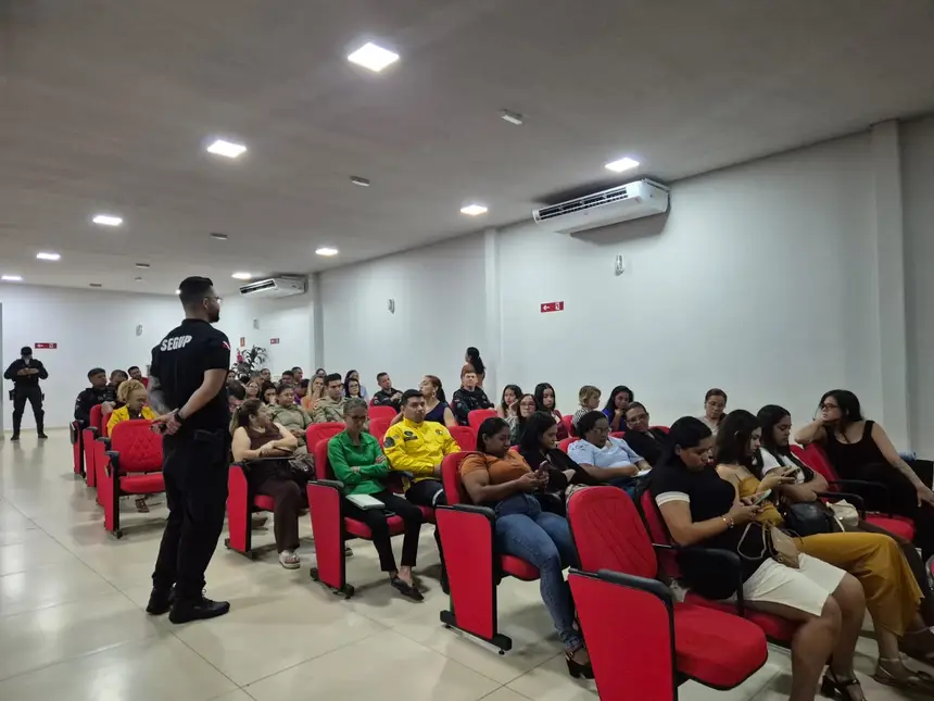 A formação reuniu 90 participantes, entre agentes do Sistema Integrado de Segurança Pública e Defesa Social (Sieds), profissionais da rede de atendimento municipal e representantes da sociedade civil, como organizações não governamentais e associações de comerciantes.