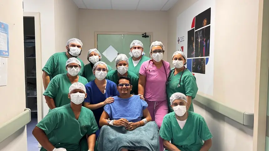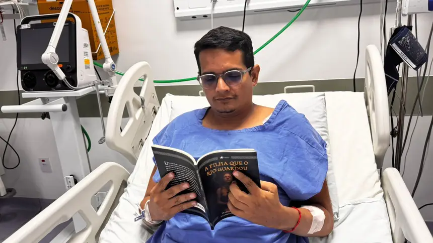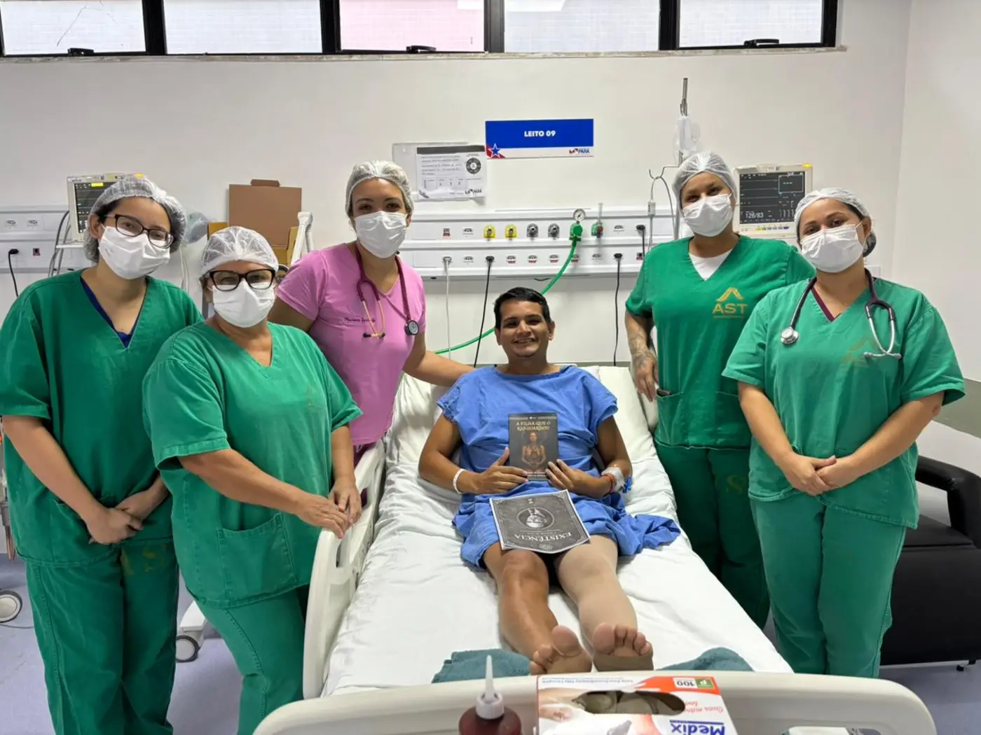 O paciente Claumir Marinho Gomes, de 38 anos, morador de Óbidos, esteve internado na UTI desde o dia 8 de abril de 2026, com problemas pulmonares, e utilizou a leitura e o passeio terapêutico durante seu processo de internação.