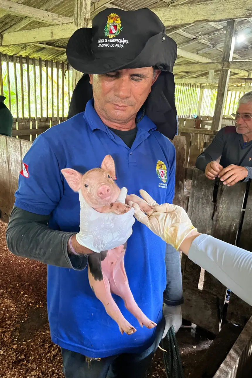 A apresentação também abordou a situação epidemiológica do país e as ações do Ministério da Agricultura e Pecuária, em conjunto com as agências estaduais de defesa agropecuária, na execução do Plano Estratégico Brasil Livre de Peste Suína Clássica. Entre as estratégias, destaca-se a implantação, em 2025, da vigilância longitudinal integrada em criações de suínos não tecnificadas, incluindo a realização de inquérito soroepidemiológico em 275 propriedades no Pará no ano de 2026, além do monitoramento de propriedades classificadas como de maior risco para a doença. A meta é intensificar as ações de vigilância ativa no Estado.