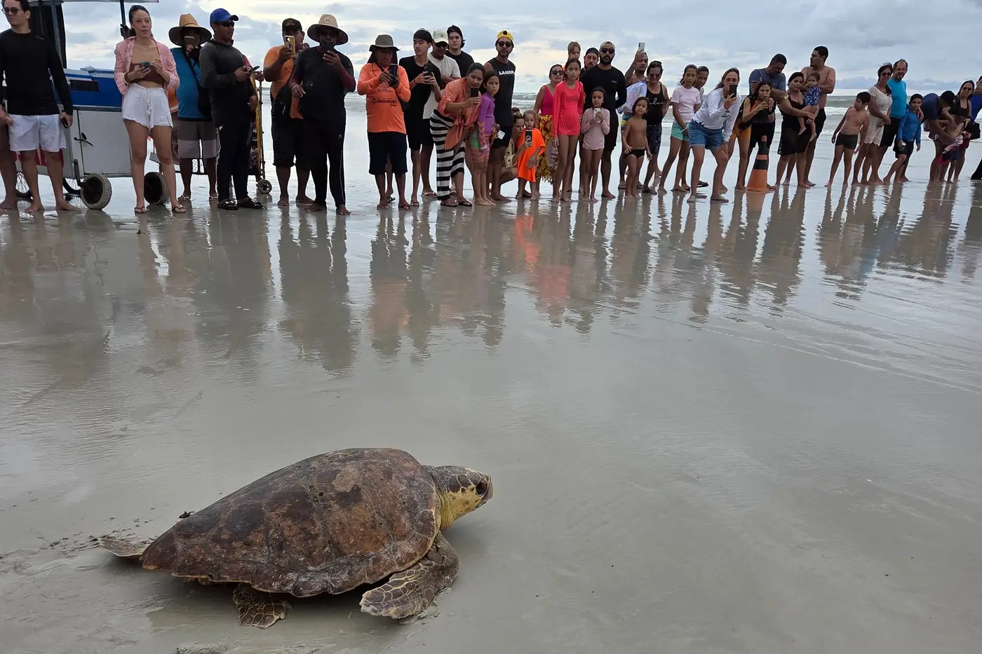 A soltura do animal, batizado de Sunset, ocorreu na Praia do Atalaia e simbolizou o êxito de uma grande força-tarefa voltada à preservação da fauna marinha no Pará