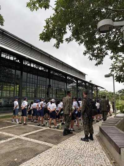 Os visitantes foram divididos em dois. Um fez a visita pela manhã e o outro, à tarde. O Programa Forças no Esporte (Profesp) é uma iniciativa social do Ministério da Defesa, em parceria com a Força Aérea Brasileira (FAB), que tem como objetivo alcançar crianças e adolescentes do ensino público em situação de vulnerabilidade social, oferecendo diversas atividades esportivas, reforço escolar e alimentação.